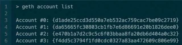 在终端运行geth account list指令,查看指派给你的新地址账户号码是什么。
