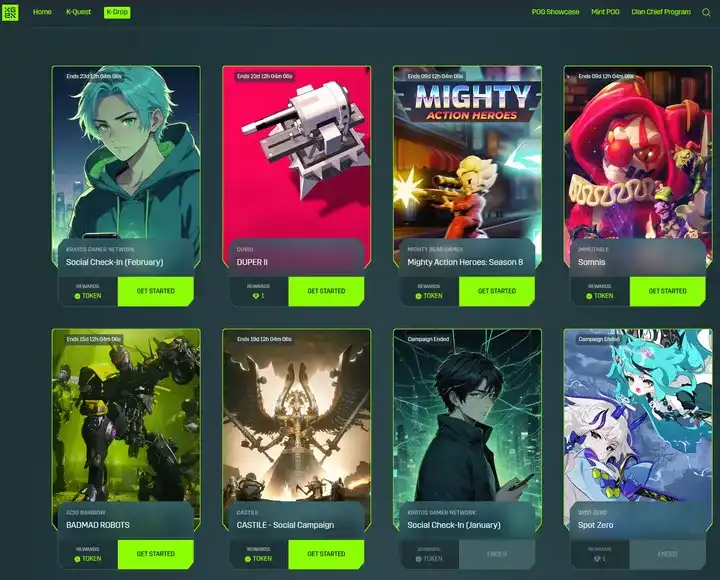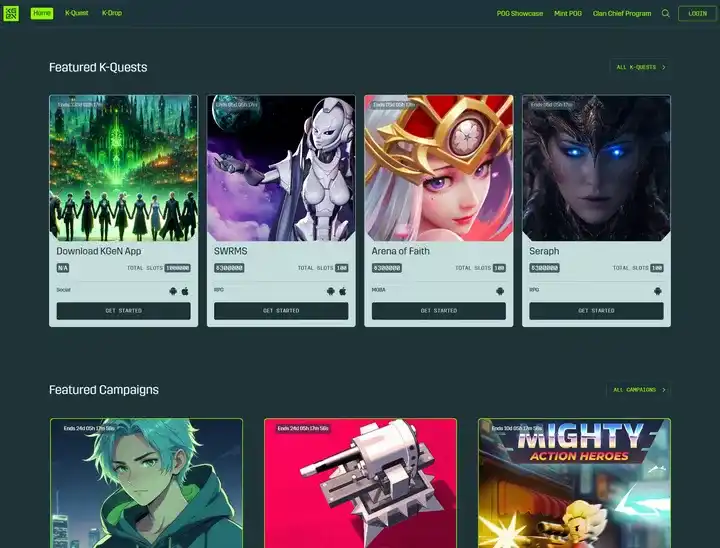 在用户意识到自己拥有区块链钱包之前,他们首先需要开始赚取奖励。为此,用户需要参与 KGeN Play 门户上发布的各种活动。任务活动分为 K-Drops 和 K-Quests。