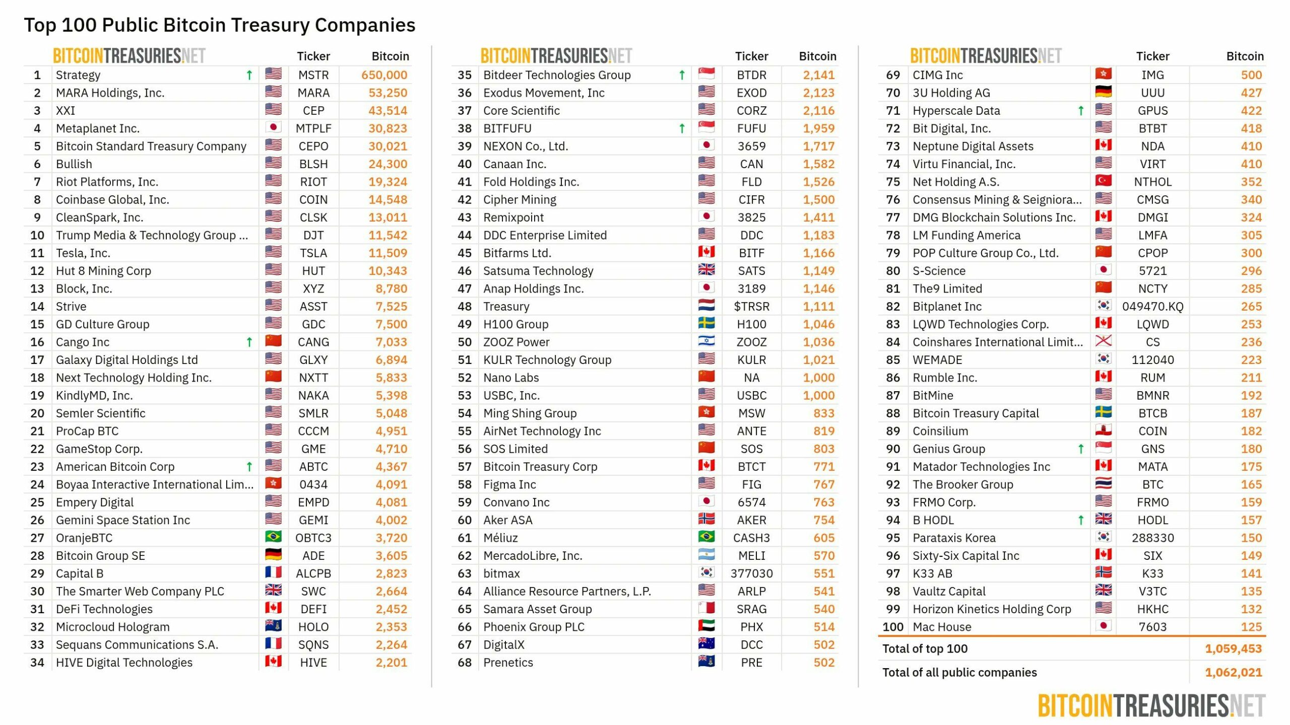 原因可能有以下几点:上市公司目前持有 1,059,453 BTC,其中 Strategy 一家公司就控制着 650,000 BTC。