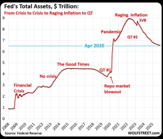 2025年11月,美联储的资产负债表规模降至6.53万亿美元,为2020年4月以来的最低水平。