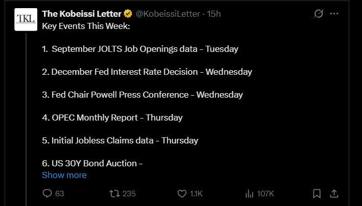 投资者们也密切关注鲍威尔的新闻发布会,以期获得有关经济状况、通货膨胀率以及央行2026年未来展望的微妙评论。总的来说,这次会议可能会预先决定新一年的金融市场走向。